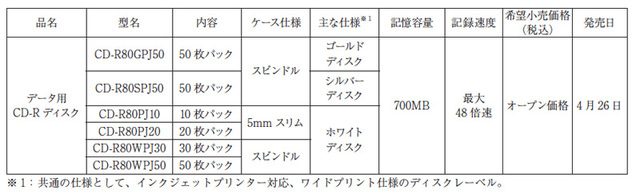 HOME > ニュース > AV&ホームシアターニュース データ用CD-Rディスクも ビクターアドバンストメディア、16倍速記録対応の録画用/データ用DVD-R ファイル・ウェブ編集部 2013年04月18日 次の写真へ CD-R新モデルの仕様一覧 次の写真へ この写真の記事へ 関連リンク DVD-R新モデルの詳細 CD-R新モデルの詳細