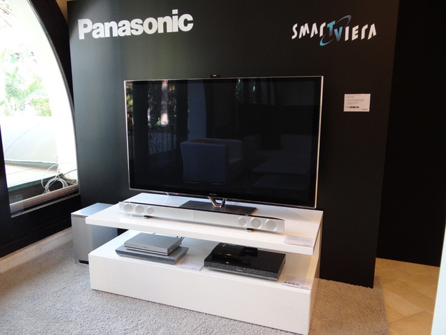 設営準備中のパナソニックブース。55インチのPDP「TX-55VTW60」や欧州で展開するBDレコーダー「DMR-BST820EG」などを紹介予定」