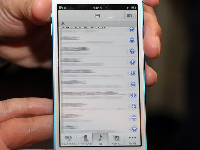 プッシュプレーヤーのプレイリスト作成画面。右側の「+」マークを押して選択する