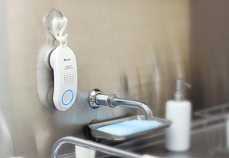 サンワサプライ、吊下げできる受話器型の防水Bluetoothスピーカー