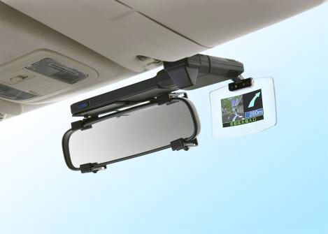 ケンウッド、ルームミラーに取り付けられるHUDカーナビ「MDV-737HUD」