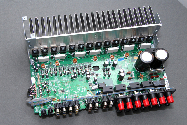 STR-DN1040のアンプ基板。ガラスエポキシ基材の回路基板を使用。