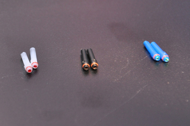 交換用ノズルインサート。左からブライト/ウォーム/バランス