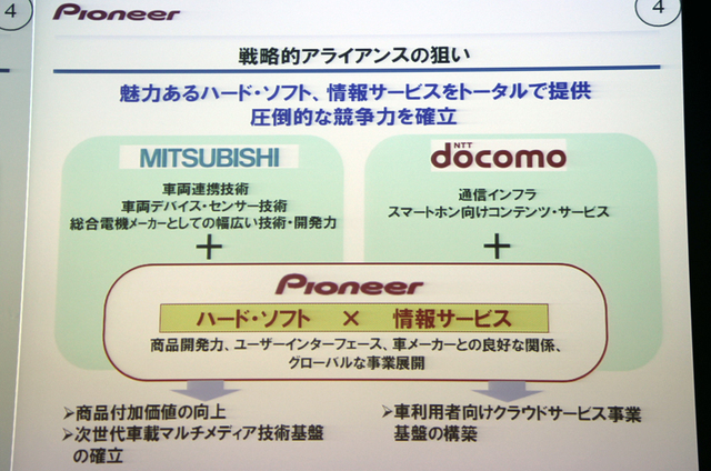 HOME > ニュース > AV&ホームシアターニュース カーエレクトロニクス事業を強化 パイオニア、ドコモ・三菱電機と資本業務提携 − 中期経営計画も発表 ファイル・ウェブ編集部 2013年05月13日 前の写真へ 次の写真へ 主力のカーエレについてハード/ソフト両面での強化を目指す 前の写真へ 次の写真へ この写真の記事へ 関連リンク 2012年度業績に関するニュースリリース(PDF) グループ組織改編に関するニュースリリース(PDF) 中期経営計画に関するニュースリリース(PDF) 三菱電機との資本・業務提携に関するニュースリリース(PDF) NTTドコモとの資本・業務提携に関するニュースリリース(PDF) パイオニア