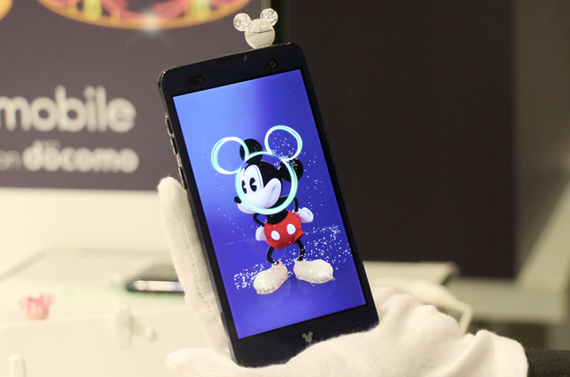 オリジナルスマホピアスが付属。ミッキーのスマホピアスを装着するとミッキーのグラフィックが、ミニーのスマホピアスを装着するとミニーのグラフィックが表示される