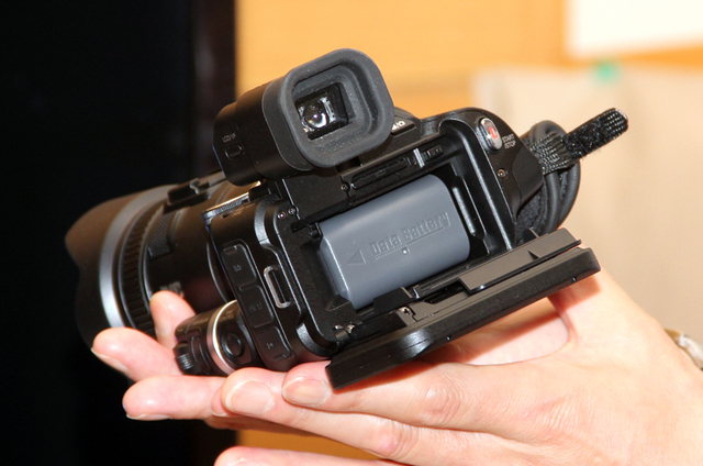 バッテリーやSDカードスロットは、三脚に取り付けたままでも交換ができるよう液晶モニターの裏側に収納