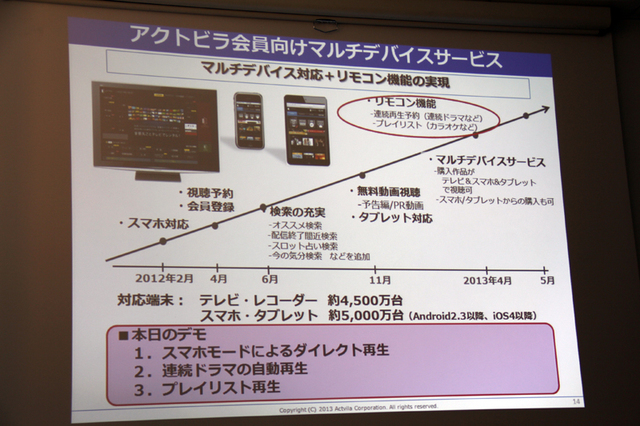 - アクトビラ、NHKテレビ放送直接連動型サービスを開始 2013/05/10