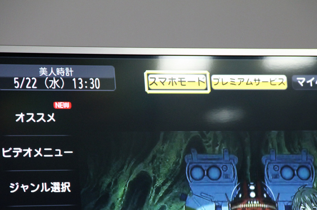 「スマホモード」を選択すると、スマートフォン上で選んだタイトルをテレビで再生できる
