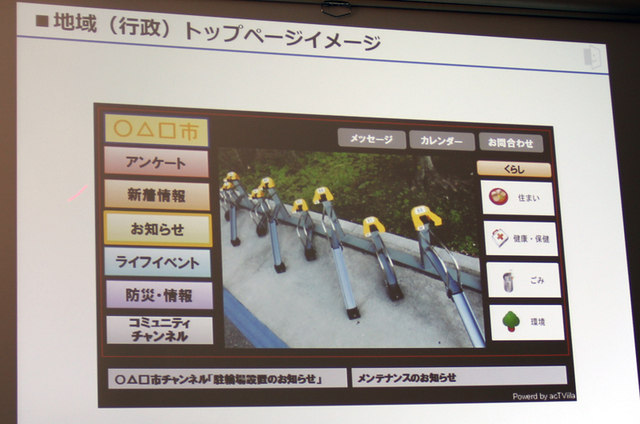 各地域トップページのイメージ。アンケートやお知らせなどを見られるようにする