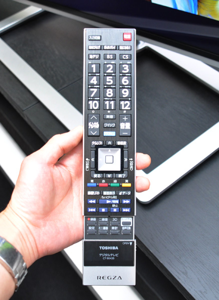 本機のリモコン。パネルの中にミニ画面の切り替えボタンを配置する