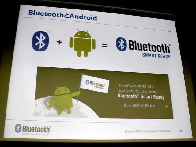 HOME > ニュース > AV&ホームシアターニュース AndroidもBluetooth Smartをサポート 「アプセサリ」化でBluetoothをあらゆるデバイスへ − Bluetooth SIGが記者説明会を開催 ファイル・ウェブ編集部 2013年05月28日 前の写真へ googleはAndroidがBluetooth Smart/Smart Readyにネイティブ対応することをを先日発表していた 前の写真へ この写真の記事へ 関連リンク Bluetooth SiG