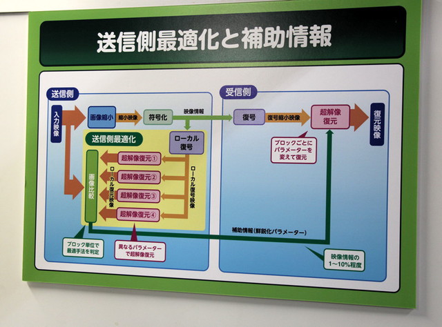 NHKが開発した超解像技術。原画と付け合わせて最適なパラメーターを解析し、復号時に利用できるのが特徴だ