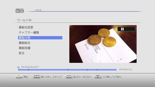分割編集のメニュー画面