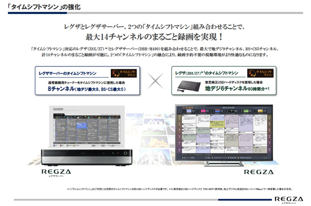 タイムシフトマシン録画機能搭載のレグザとの組み合わせで大14チャンネル分のまるごと録画も可能になる