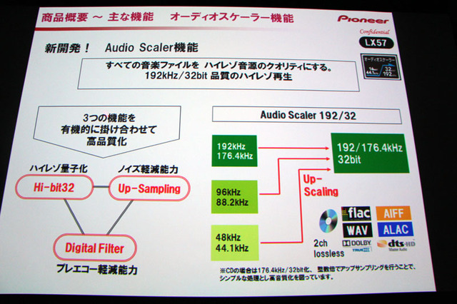2chソースを最大192kHz/32bitまでアップスケーリングできる「オーディオスケーラー」機能を初搭載