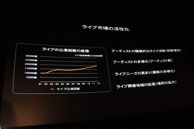 2002年と比べ2012年はライブ公演数が2倍に伸びているという