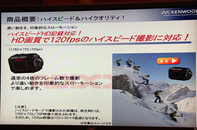 720p撮影時120fps撮影可能な「ハイスピードREC」を搭載