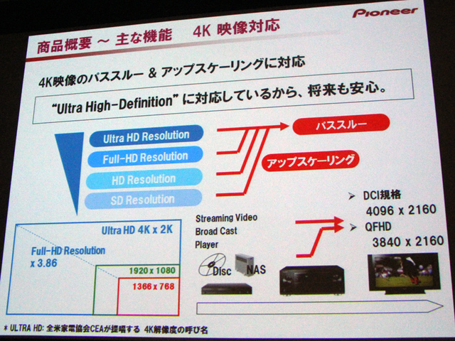4K信号のパススルーとアップスケーリングにも対応