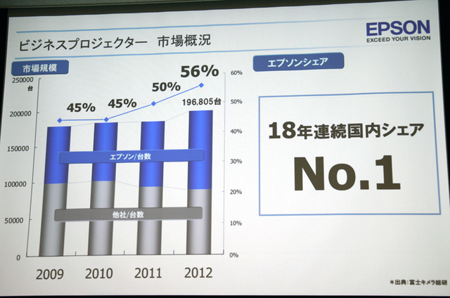 エプソンはビジネスプロジェクター市場で18年間国内シェアNo.1を獲得しているという