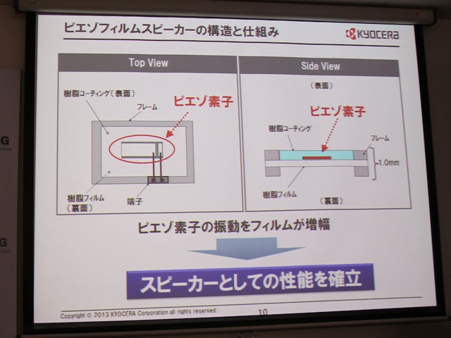 HOME > ニュース > AV&ホームシアターニュース テレビに搭載ユニットは共同開発 京セラ、1mmの超薄型スピーカーをLGの曲面有機ELテレビに搭載 ファイル・ウェブ編集部 2013年08月29日 前の写真へ 次の写真へ ピエゾ素子の振動を樹脂性のフィルムが増幅することで、スピーカーとして機能する 前の写真へ 次の写真へ この写真の記事へ 関連リンク LGエレクトロニクス・ジャパン(株) 本件のニュースリリース 京セラ(株) 本件のニュースリリース
