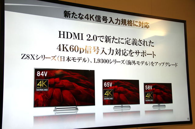 HOME > ニュース > AV&ホームシアターニュース Z8Xシリーズの4K/60p対応も発表 <IFA>東芝、「4Kの先駆者からリーダーへ」 − グローバルで4Kテレビ積極展開 ファイル・ウェブ編集部 2013年09月06日 次の写真へ Z8Xシリーズを4K/60p入力に対応させるアップグレードを行う 次の写真へ この写真の記事へ 関連リンク (株)東芝 IFA2013日本語サイト IFA2013レポート一覧