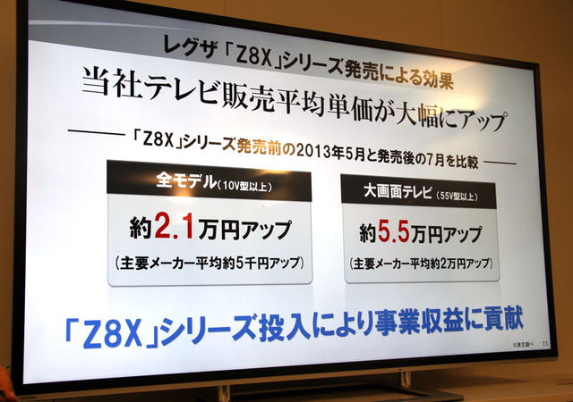 HOME > ニュース > AV&ホームシアターニュース Z8Xシリーズの4K/60p対応も発表 <IFA>東芝、「4Kの先駆者からリーダーへ」 − グローバルで4Kテレビ積極展開 ファイル・ウェブ編集部 2013年09月06日 前の写真へ 次の写真へ Z8Xシリーズの投入によりテレビの販売平均単価が大幅に向上したという 前の写真へ 次の写真へ この写真の記事へ 関連リンク (株)東芝 IFA2013日本語サイト IFA2013レポート一覧