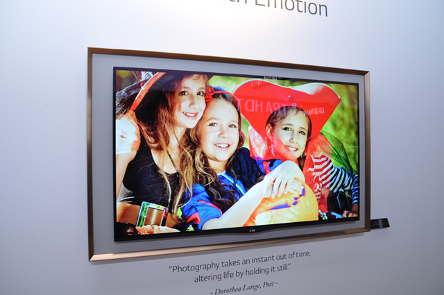 HOME > ニュース > AV&ホームシアターニュース 額縁スタイルで“魅せる”テレビスピーカーを提案 <IFA>LG、77型の湾曲4K有機ELテレビや65/55型の新型4K液晶を発表 山本 敦 2013年09月07日 前の写真へ 次の写真へ 「GALLERY OLED TV」の参考展示 前の写真へ 次の写真へ この写真の記事へ 関連リンク IFA2013日本語サイト IFA2013レポート一覧