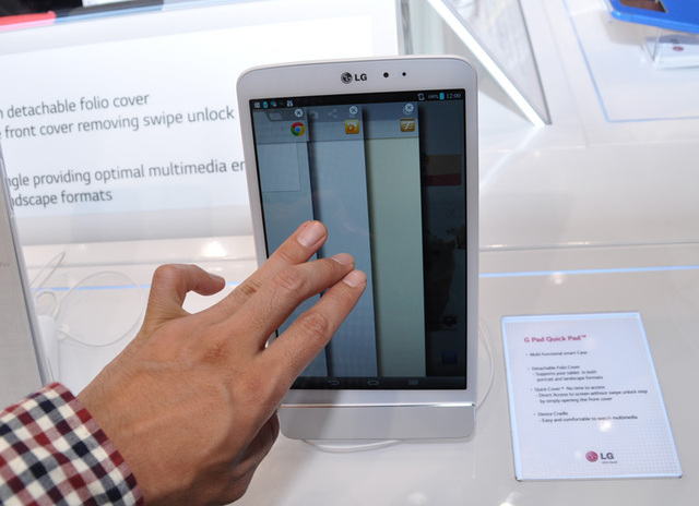 HOME > ニュース > AV&ホームシアターニュース 画角は少し“面長”の16:10 <IFA>LG、プレミアム・タブレット「LG G Pad 8.3」デビュー 山本 敦 2013年09月07日 前の写真へ 「Slide Aside」の呼び出しは3本の指で画面を横にスワイプする 前の写真へ この写真の記事へ 関連リンク IFA2013日本語サイト IFA2013レポート一覧