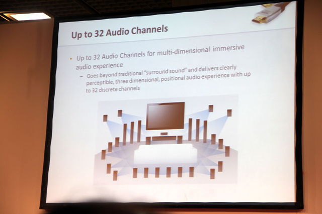 HOME > ニュース > AV&ホームシアターニュース 4K/60p入力や21対9映像、32ch音声に対応 <IFA>「HDMI 2.0」プレスカンファレンス開催、新機能の詳細を説明 ファイル・ウェブ編集部 2013年09月07日 前の写真へ 次の写真へ 最大32チャンネルのオーディオチャンネルに対応する 前の写真へ 次の写真へ この写真の記事へ 関連リンク Phile-webニュース【「HDMI 2.0」発表 − 4K/60p対応、32ch音声をサポート】 HDMI 公式サイト HDMI 2.0のニュースリリース(英文) HDMI 2.0の詳細(英文)