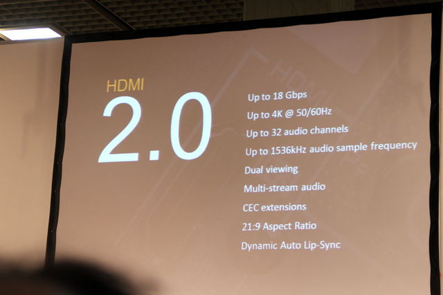 HOME > ニュース > AV&ホームシアターニュース 4K/60p入力や21対9映像、32ch音声に対応 <IFA>「HDMI 2.0」プレスカンファレンス開催、新機能の詳細を説明 ファイル・ウェブ編集部 2013年09月07日 前の写真へ 次の写真へ HDMI 2.0の概要 前の写真へ 次の写真へ この写真の記事へ 関連リンク Phile-webニュース【「HDMI 2.0」発表 − 4K/60p対応、32ch音声をサポート】 HDMI 公式サイト HDMI 2.0のニュースリリース(英文) HDMI 2.0の詳細(英文)