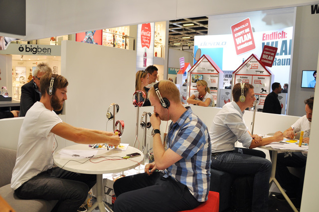 HOME > ニュース > AV&ホームシアターニュース HiFi試聴コーナーも用意 <IFA>ゼンハイザー、「MOMENTUM On-Ear」の新色に注目 山本 敦 2013年09月07日 次の写真へ 「MOMENTUM On-Ear」をつけて音楽を聴きながら似顔絵を描いてもらえるコーナーも 次の写真へ この写真の記事へ 関連リンク IFA2013日本語サイト IFA2013レポート一覧