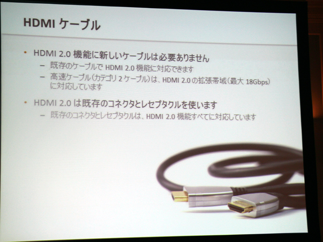 HDMI 2.0は、HDMI 1.4 HIGHSPEEDM(カテゴリー2)であれば対応する