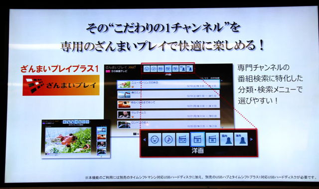 「タイムシフトプラス1」で録画した番組は、「ざんまいプレイ」により番組のジャンル一覧リストが表示される