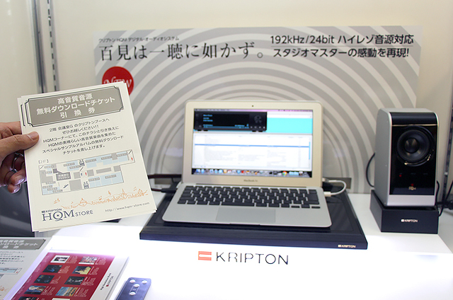ハイレゾ音源をテーマにしたブースでは、e-onkyo musicやKRIPTON HQM STORE、ナクソスミュージックライブラリーなどで配信中の音源を聴くことができる。HQM STOREは特別無料DLクーポンも配布中