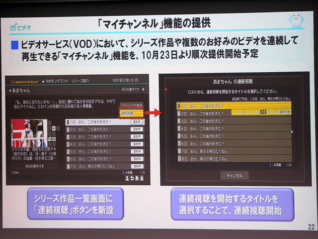 「マイチャンネル」でコンテンツの連続視聴が可能に