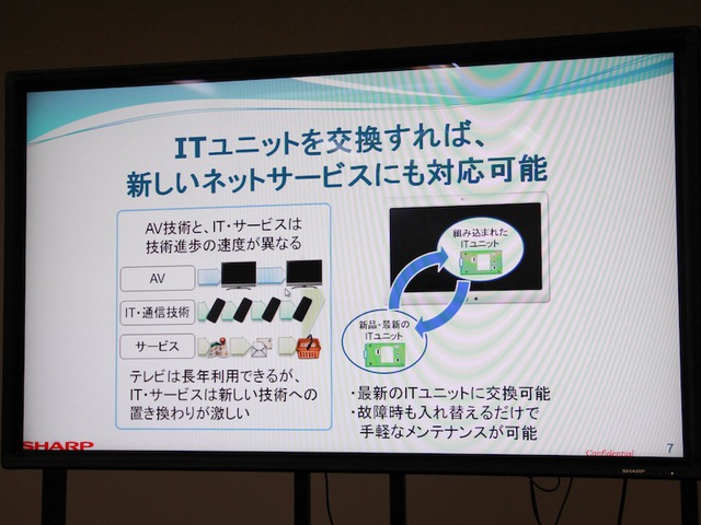 HOME > ニュース > AV&ホームシアターニュース 病院、ホテル、フィットネス施設への導入を提案 シャープ、「ITテレビモニター」の説明会を開催 ファイル・ウェブ編集部 2013年10月24日 前の写真へ 次の写真へ ITユニットの交換により、新しいネットサービスにも対応可能となる 前の写真へ 次の写真へ この写真の記事へ 関連リンク シャープ(株) 本製品のニュースリリース