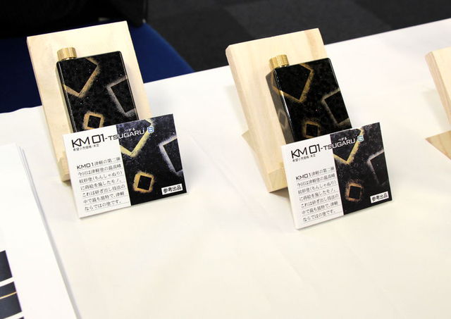 木曽工業は「KM01-TSUGARU B/G/R」を出展。以前のものとは異なるデザインで、職人も変わったという。年明けに9万円弱での販売を想定している