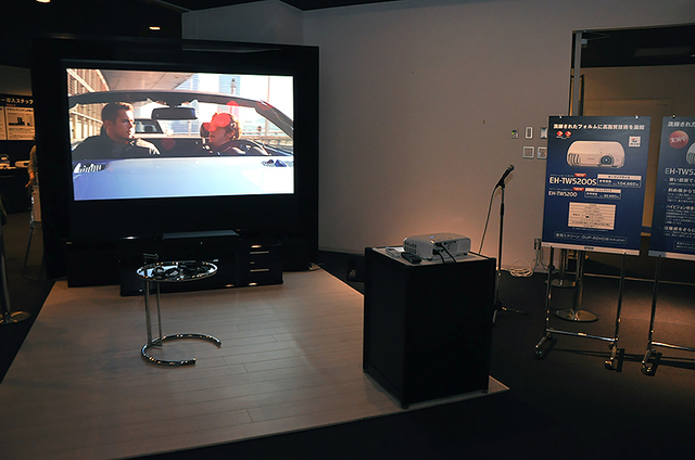 狭い部屋でも大画面を楽しめるのが特徴の「EH-TW5200」。6畳間に設置したイメージで体験することができる