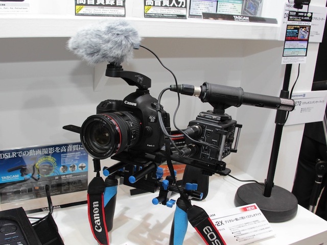 デジタル一眼レフ用X-Yステレオマイク「TM-2X」を装着した一眼レフカメラ
