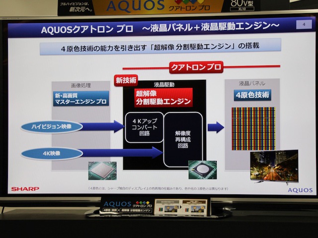 新開発の「超解像 分割駆動エンジン」と「4原色技術」が“4K相当”表示を可能にする