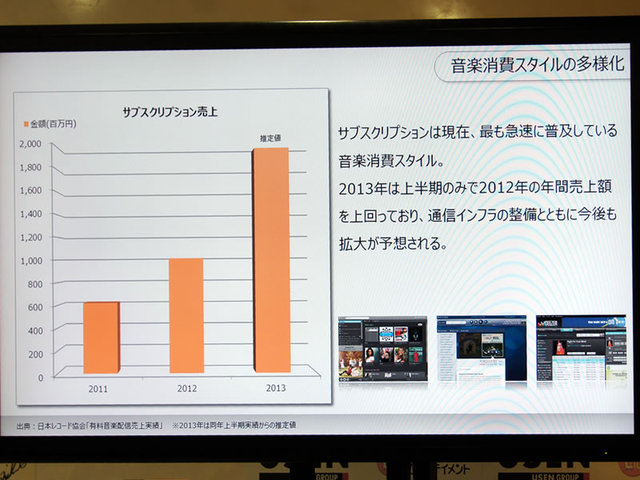 HOME > ニュース > AV&ホームシアターニュース 将来的にはライブチケット販売も USENとローソンHMV、月額490円のスマホ向け定額音楽配信サービス ファイル・ウェブ編集部 2013年12月03日 前の写真へ 次の写真へ 日本でも定額型サービスが伸張 前の写真へ 次の写真へ この写真の記事へ 関連リンク 本件の詳細(PDF) スマホでUSEN USEN 550ch × HMV