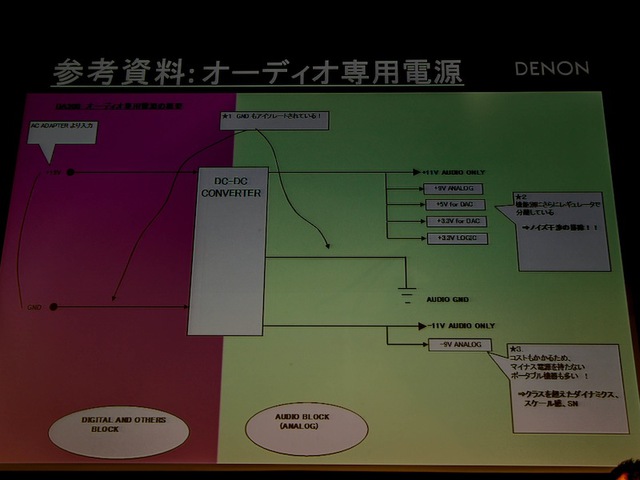 HOME > ニュース > AV&ホームシアターニュース デノンのHi-Fiオーディオ技術を惜しみなく投入したUSB-DAC <ポタフェス>デノン、USB-DAC「DA-300USB」の発表会を開催/デノンやB&Wのヘッドホンも多数出展 ファイル・ウェブ編集部 2013年12月21日 前の写真へ 次の写真へ DA-300USBのオーディオ専用電源の構成図 前の写真へ 次の写真へ この写真の記事へ 関連リンク ポタフェス特設ページ e☆イヤホン ポタフェス2013 関連記事一覧