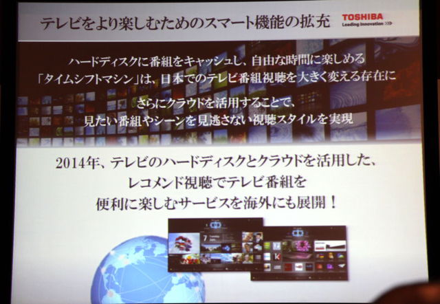 HOME > ニュース > AV&ホームシアターニュース HDMI 2.0+HDCP 2.2対応 【CES】東芝、4K「プレミアム」REGZAを参考出展 − 広色域+直下型でHEVC/HDCP 2.2対応 ファイル・ウェブ編集部 2014年01月06日 前の写真へ 次の写真へ タイムシフトマシンをベースにした機能の海外展開も行う 前の写真へ 次の写真へ この写真の記事へ 関連リンク 2014 International CES CES 2014関連記事一覧