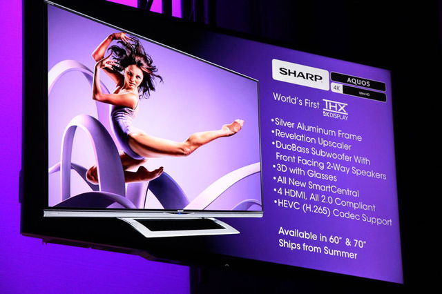 HOME > ニュース > AV&ホームシアターニュース 2014年新モデル4シリーズを発表 【CES】シャープ、4K相当表示「Q+」など新AQUOS − WiSA対応のハイレゾ伝送プレーヤーも ファイル・ウェブ編集部 2014年01月07日 次の写真へ ネイティブ4Kパネル搭載の新AQUOS 次の写真へ この写真の記事へ 関連リンク 2014 International CES CES 2014関連記事一覧
