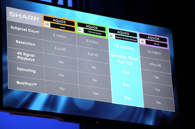 HOME > ニュース > AV&ホームシアターニュース 2014年新モデル4シリーズを発表 【CES】シャープ、4K相当表示「Q+」など新AQUOS − WiSA対応のハイレゾ伝送プレーヤーも ファイル・ウェブ編集部 2014年01月07日 前の写真へ 次の写真へ 4シリーズの概要をまとめた表 前の写真へ 次の写真へ この写真の記事へ 関連リンク 2014 International CES CES 2014関連記事一覧
