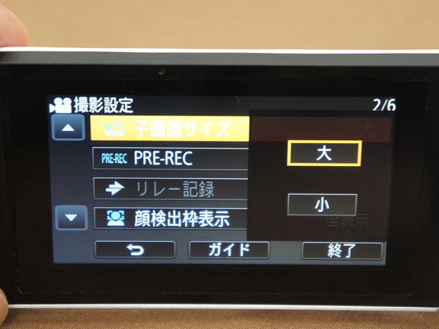 撮影設定画面から、サブカメラ撮影中の小画面サイズを設定できる