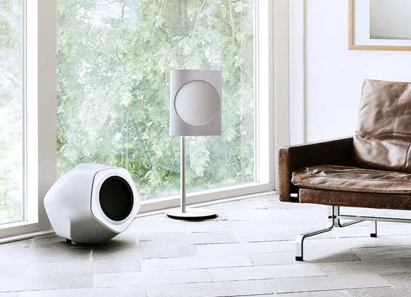 BeoLab 19(写真左)。BeoLab 17と組み合わせたところ