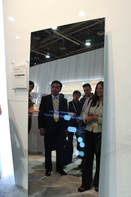 HOME > ニュース > AV&ホームシアターニュース デジタルサイネージとしての活用にも期待が集まる 【CES】東芝が提案する「鏡面一体型ディスプレイ」− AVとインテリアの融合を目指す ファイル・ウェブ編集部 2014年01月17日 前の写真へ 鏡の中に映像が浮かび上がる様子に、多くの来場者が足を止めていた 前の写真へ この写真の記事へ 関連リンク 2014 International CES CES 2014関連記事一覧