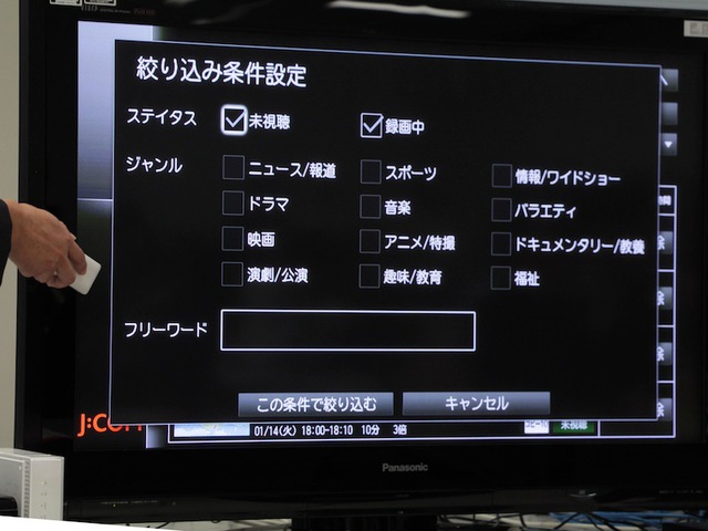 ジャンルやフリーワードで絞り込んでの録画番組検索が可能