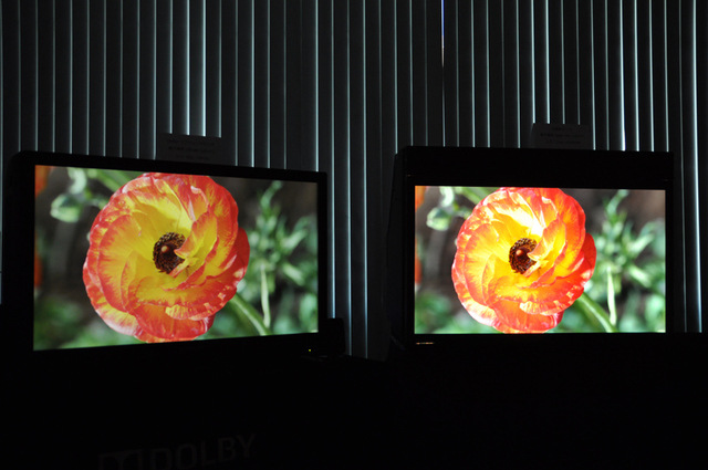 HOME > ニュース > AV&ホームシアターニュース 米国で年内に対応テレビ・VODサービスが登場予定 ドルビー、輝度・コントラスト・色再現性向上の映像技術「ドルビービジョン」説明会を開催 山本 敦 2014年01月23日 前の写真へ 同じ視聴環境で花びらの映像を比較。右のドルビービジョン対応モニターは色彩感、立体感の表現がより豊か 前の写真へ この写真の記事へ 関連リンク ドルビーラボラトリーズ